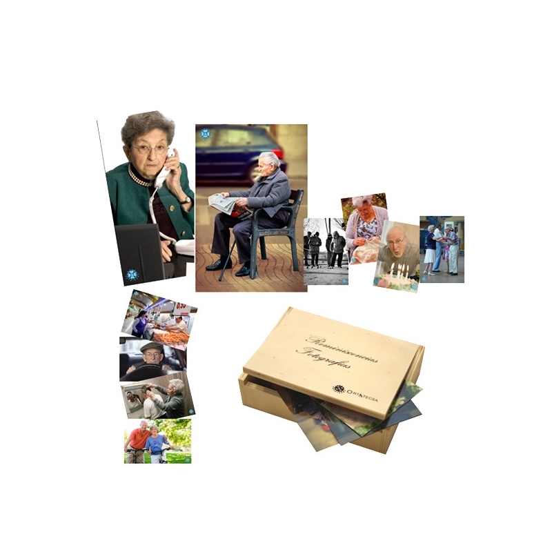 Serie de fotografías para trabajar reminiscencias y propiciar el diálogo. Contiene secuencias con las situaciones más comunes de la vida cotidiana en las personas de la tercera edad (pasear, coser, leer, asearse, etc.).