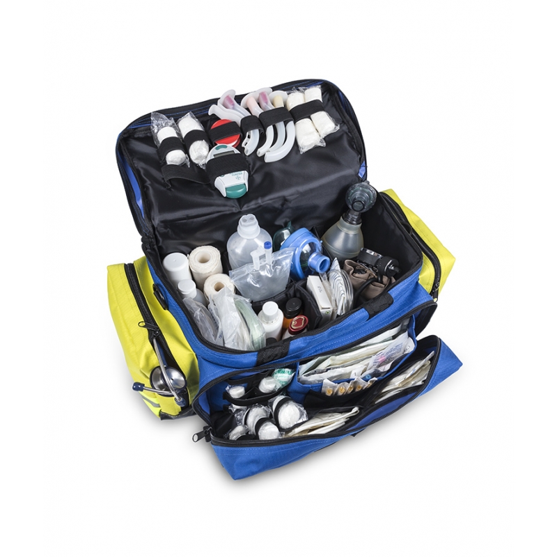 Bolsa de emergencias acolchada y diseñada para alojar el material sanitario mas delicado, subdividida en su interior con 4 compartimentos de capacidad media y un compartimento alargado de gran capacidad. Interior diseñado para la fácil visulización y organización de material diverso, gracias a las bandas elásticas que garantizan su sujeción. Cuenta también con cuatro bolsillos externos, dos laterales, uno trasero y uno frontal subdividido en su interior con bolsillos y gomas