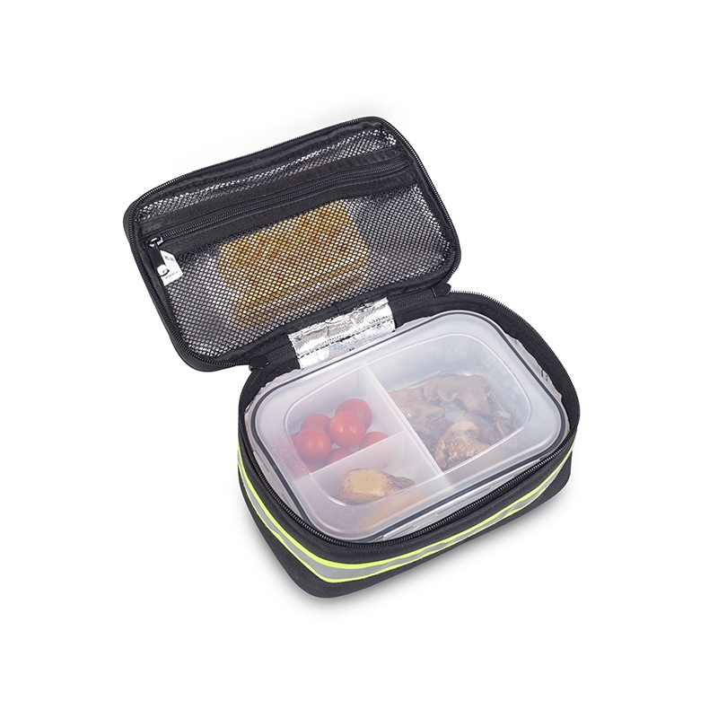 DISEÑO: Consta de un compartimento superior donde puedes transportar cubiertos, snacks o una servilleta. En el interior, un bolsillo con cremallera te permitirá incluir un gel frío si deseas mantener el interior a una temperatura concreta.