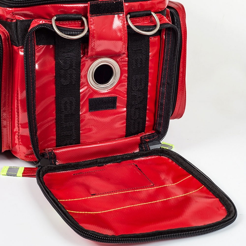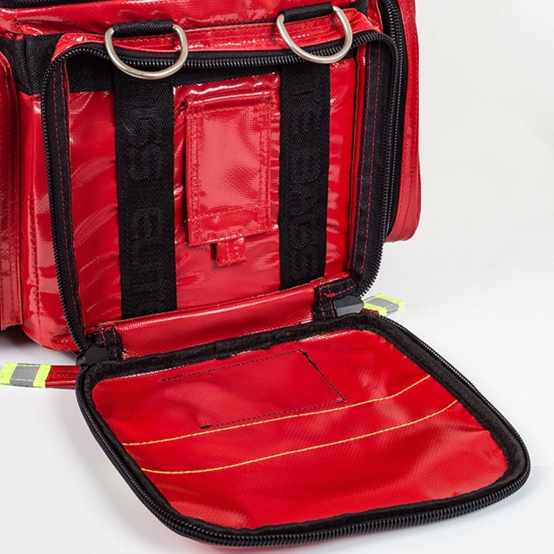 CRITICALS TARPAULIN Bolsa de emergencias para Soporte Vital Avanzando (SVA) Su estructura interna tipo panal permite alojar tanto la botella de oxígeno como todo el material sanitario necesario para la atención de pacientes en estado crítico. Fabricada en tarpaulin, material impermeable y de fácil limpieza tanto interior como exterior gracias a su forro interno fabricado en TPU.