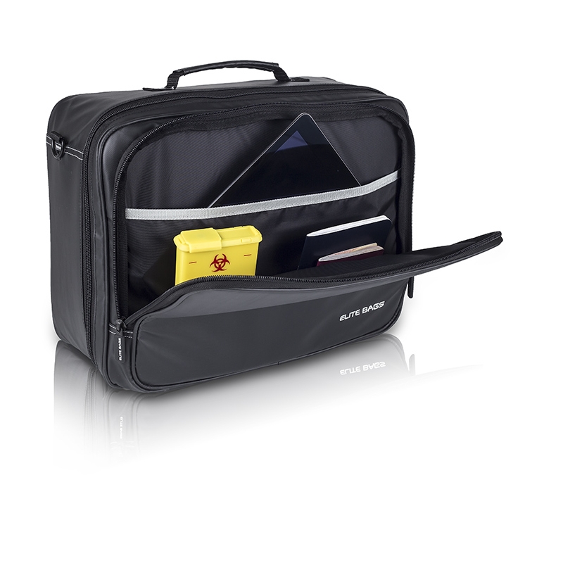 La gran capacidad de la Cartera básica para visitas y su sencillez permiten transportar todo lo necesario para una asistencia domiciliaria completa. De líneas básicas pero intuitivas, satisface perfectamente la necesidad del profesional en sus visitas.