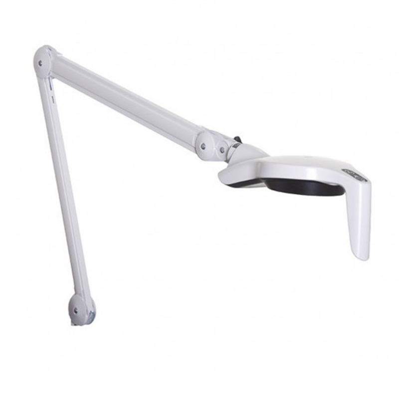 Características técnicas: Fuente de luz: LED Vida útil: 50.000 horas Lux a 1 metro: 35.000 lux Lux a 50 centímetros: 120.000 lux Temperatura de color: 4.000 ºK Rendimiento de color: 95% Longitud de brazo: 105 cm Color: Blanco Sin soporte