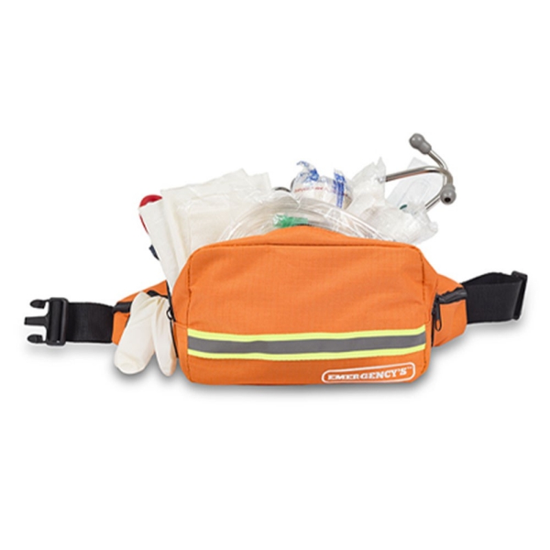 Esta riñonera botiquín naranja es cómoda y ligera, perfecta para transportar el botiquín de primeros auxilios. La riñonera cuenta con un cuerpo principal diáfano para albergar el material más voluminoso.