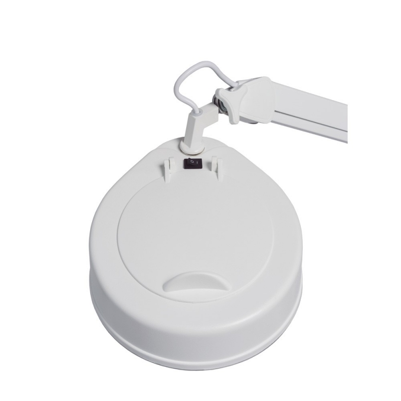 Incorpora una lupa fluorescente circular de 22W y 5 dioptrías. Produce una luz sin sombras y no calienta. Brazos compensados por muelles internos. Interruptor situado en el cabezal. Cabezal ajustable. Tapa de seguridad para evitar polvo, rozaduras u otros factores externos que puedan dañar la lente.
