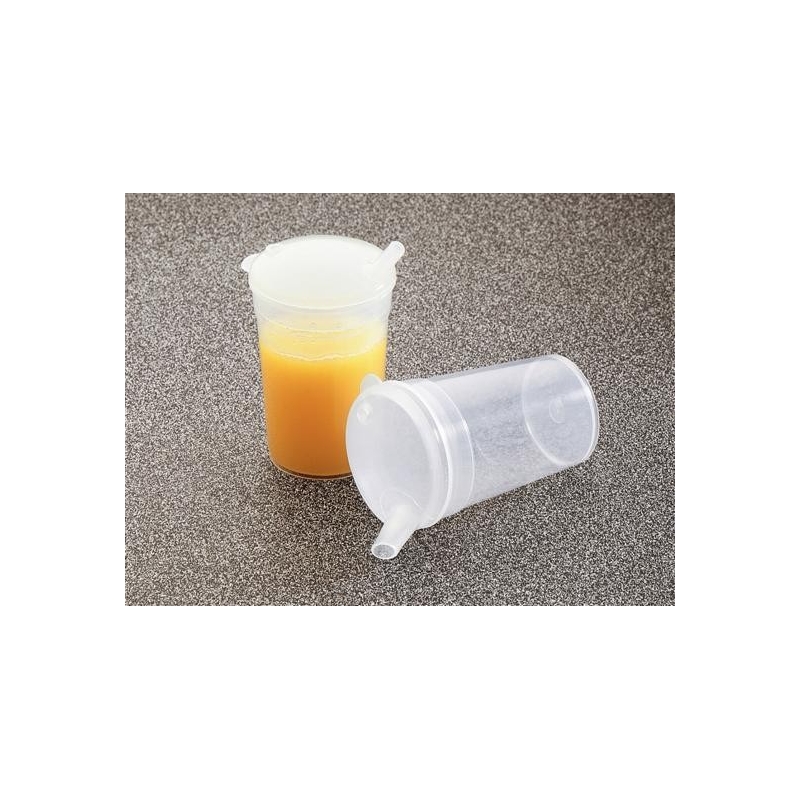 Pack de dos vasos de alimenación fabricados en plástico resistente.Diseñados para una ingesta en posición angulada para no inclinar la cabeza gracias a su tetina de 4 y 8 mm. Pensado especialmente para personas que padecen lumbago, contracciones o hernias, con el objetivo de facilitar su rutina.