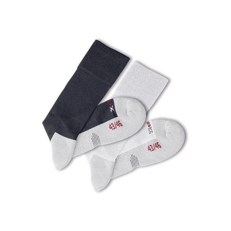Calcetín especial para pies sensibles, pie de riesgo y pie diabético. Incluye nuevas tecnologías Coll Max y X Static para activar la microcirculación de la sangre, problemas de olor y sudoración y mantenimiento de la temperatura del pie en el calzado. Sin Costuras.Modelo especial con acolchado extra en la planta. Diseño especial anatómico, no compresivo en el borde y forma especial en talón. Bicolor: gris y negro.