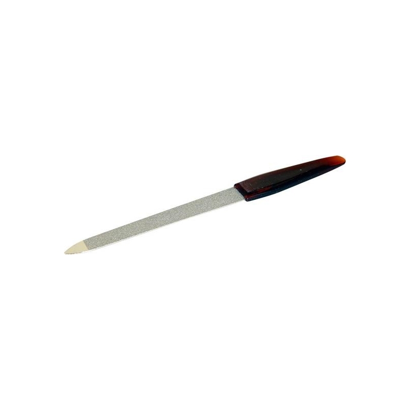 De gran resistencia, lima profundamente cualquier tipo de uña. Estrecha y manejable gracias a su mango de plástico.