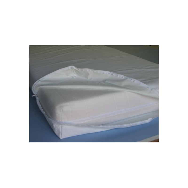 Funda de colchón que cubre el colchón completo, de tejido de plana, 50% de poliéster y 50%algodón, blanqueado con recubrimiento de membrana de poliuretano microporoso, impermeable y transpirable. Lavado en medio acuoso 95º y/o esterilizable.