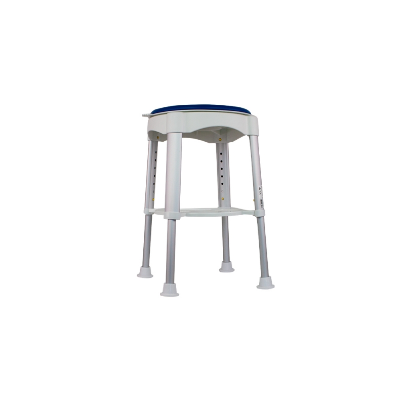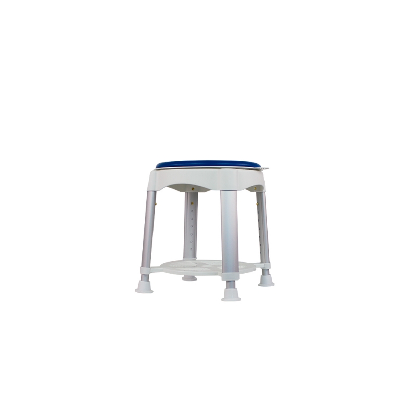 Se trata de un taburete inoxidable con asiento giratorio para facilitar la movilidad. Este taburete cuenta con patas de aluminio de altura regulable para adaptarse a la perfección a las necesidades del usuario. Además, el taburete incorpora una práctica repisa en la parte inferior del asiento para poder dejar esponjas, jabones, o incluso el teléfono de la ducha. Este taburete es desmontable sin necesidad de herramientas. Por otro lado, cuenta con unas conteras antideslizantes para evitar posibles accidentes. No necesita herramientas para su montaje.