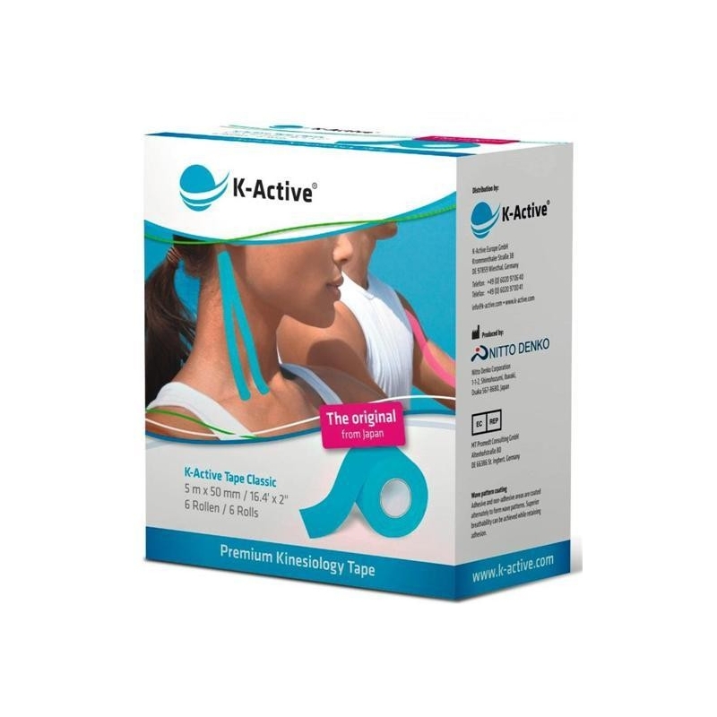 Tape de algodón, poroso, transpirable y del mismo grosor de la piel (vendaje neuromuscular). Nuevo formato, rollo de Kinesiology Tape K-Active envasado en cajas individuales.