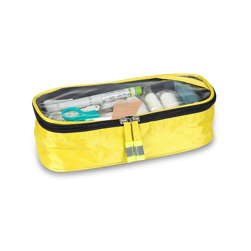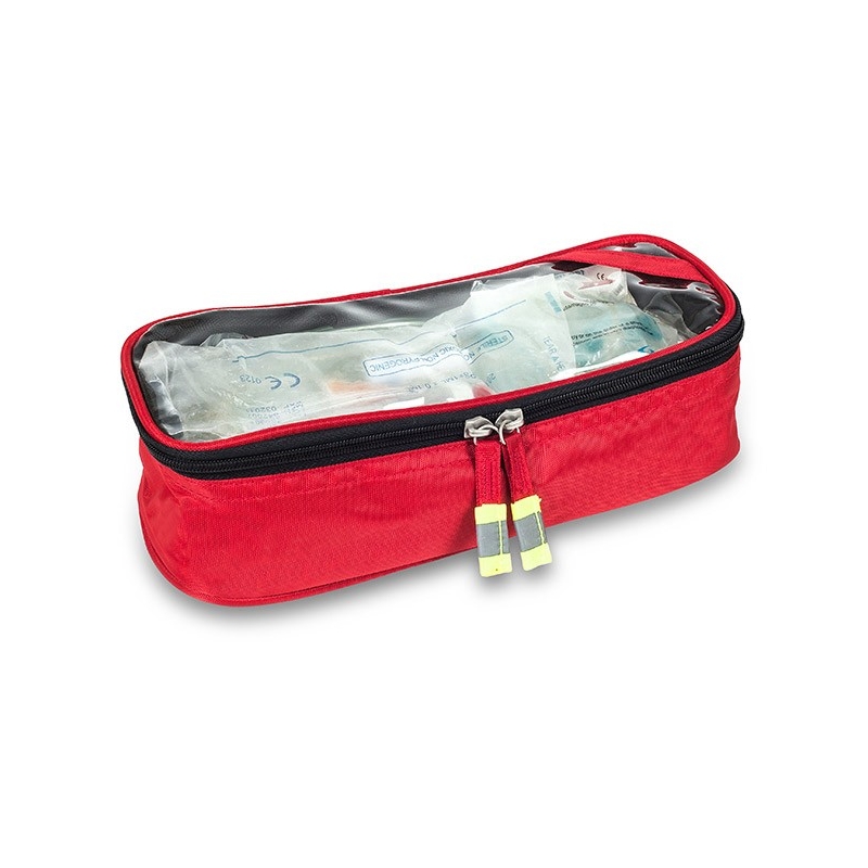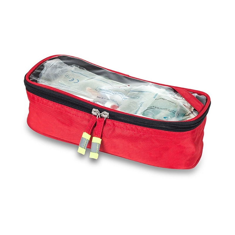 SET COMPARTIMENTOS DE COLORES Set compartimentos de colores, 420D Polyester Set de cuatro compartimentos de colores. Gracias a su frontal transparente podrás identificar su contenido de manera cómoda y rápida. Cada compartimento es de un color, lo que permite clasificar el material e instrumental siguiendo el código de colores international: azul (respiratorio), rojo (circulatorio), verde (quirúrgico) y amarillo (pediátrico) Características Frontal de material transparente antipunción. Separadores internos para ajustar el material. Permite la clasificación del material e instrumental siguiendo el código de colores internacional. Frontal transparente para una rápida identificación del contenido en caso de emergencia. Cierre con cremallera.