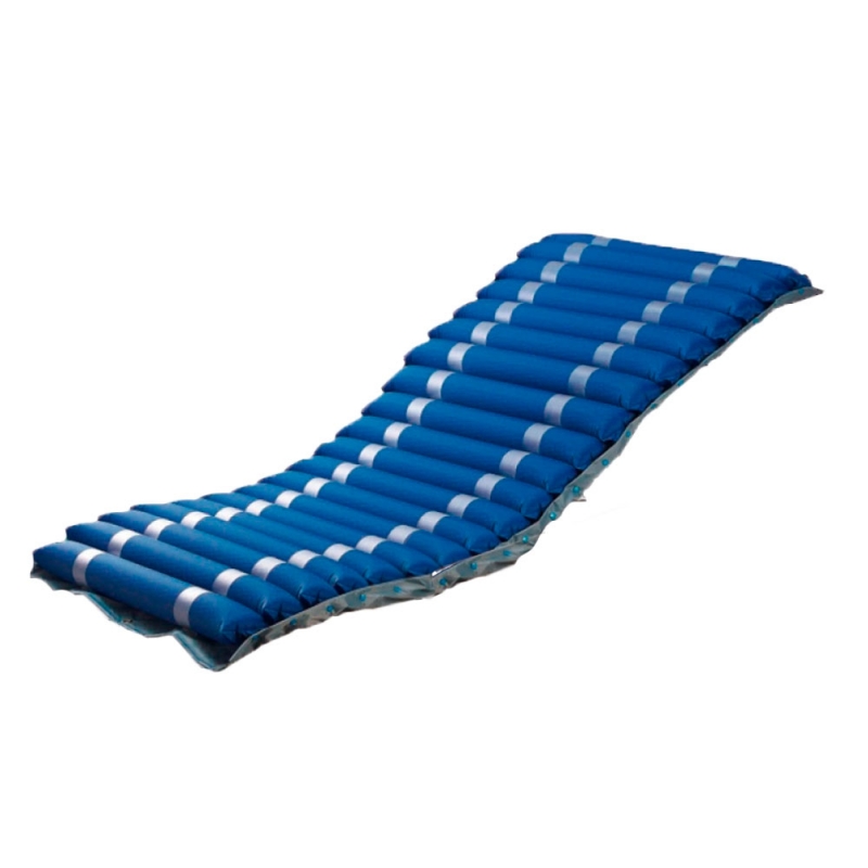 Este colchón antiescaras cuenta con alternancia de celdas y ajuste según el peso del paciente. Tiene 20 celdas, con un caudal de aire de entre 6 y 8 litros por minuto, recibiendo de esta manera el paciente un constante alivio de la presión, activando la circulación y previniendo la formación de escaras.