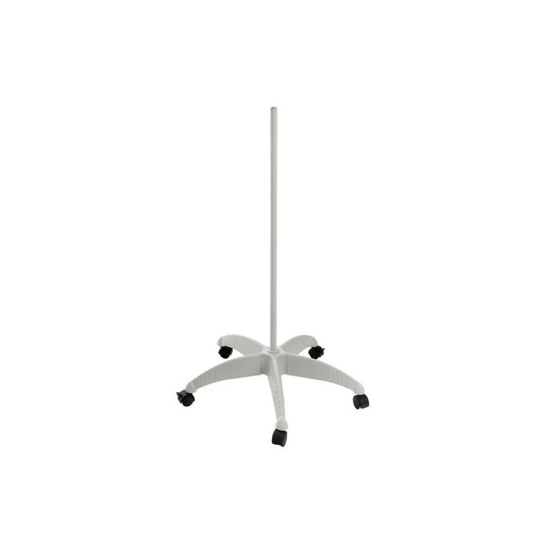El producto incluye sólo la base rodable con mástil, no el foco. Está fabricado en acero y pintado en blanco Peso: 4 kg.