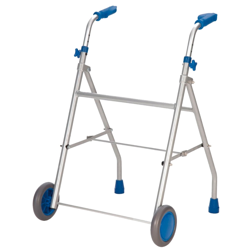 La comodidad en la marcha es lo primordial en este nuevo andador de aluminio, ligero y fácil de plegar. Cuenta con nuevas ruedas de mayor tamaño que hacen de este producto un caminador estable y seguro. Así mismo, incorpora puños blandos y anatómicos que se adaptan bien a las manos y son, además, de altura graduable. Disponible en varios colores.