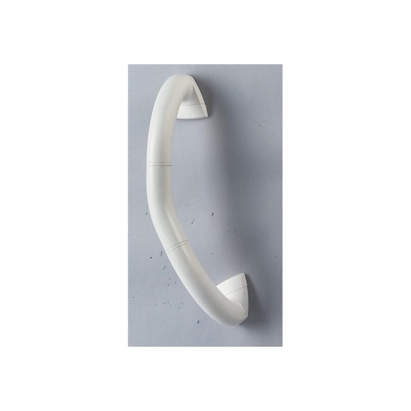 Asidero de baño con codo de 150º de 40 cm fabricado en plástico y aluminio, de un diámetro de 3,5 cm, garantizan una presión fácil y segura. Se entregan con tornillería.