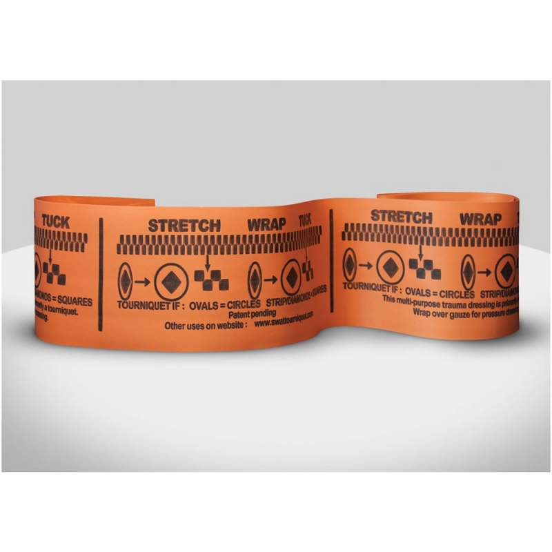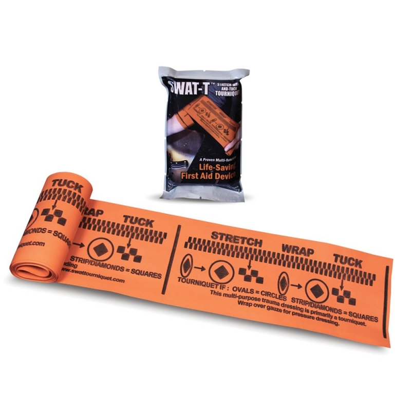 SWAT-T Torniquete de rescate NARANJA El SWAT-Tourniquet es un apósito único y polivalente, cuyo nombre proporciona la descripción para su uso: Stretch, Wrap and Tuck (Estirar, envolver y plegar). Así pues, es el elemento más eficiente para controlar el sangrado. Permite su aplicación tanto en las extremidades, como en la ingle, axilas, e incluso el cuello. Su fácil utilización permite que cualquier persona pueda aplicarlo incluso teniendo poca o nula formación, lo que sumado a su peso y tamaño compacto, lo convierten en el compañero indispensable tanto en el campo de batalla como en cualquier emergencia.