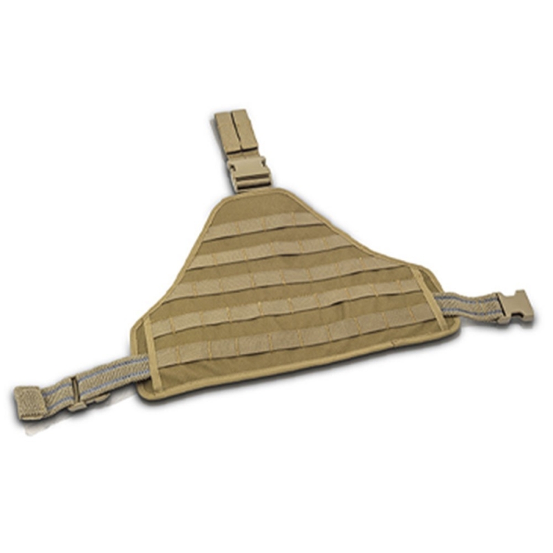 "FUNDA PERNERA MOLLE PANEL ANTITRAUMA DROPLEG Panel de pierna triangular con sistema MOLLE, con posibilidad de blindaje acoplando el panel balístico nivel IIIA, ofreciendo protección integral en la zona femoral. Incluye una pieza de plástico en su interior que le aporta rigidez y soporte a la carga."
