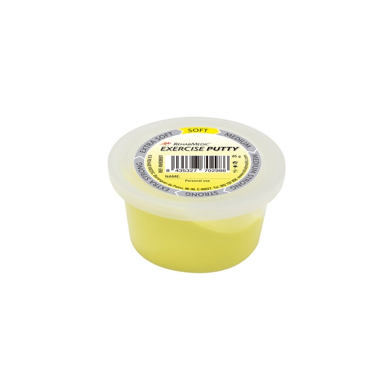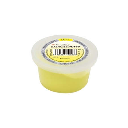 Masilla de pasta en color rojo para rehabilitación de músculos o aliviar el estés de forma cómoda y limpia, ya que no deja residuos. Fácil de usar, está indicado epecialmente para personas que padecen artritis. Producto idóneo para aquellas personas que tengan limitación de movimiento en las manos y necesiten hacer rehabilitación para fortalercer la movilidad y flexión de los dedos. El color amarillo hace referencia al nivel de referencia extra-suave.