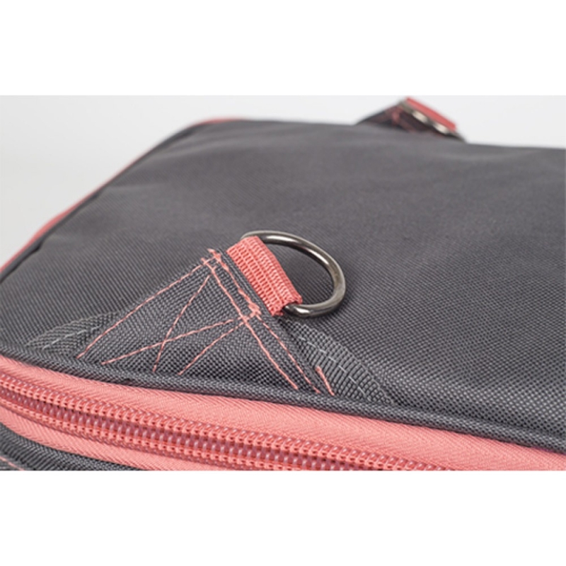 GPS Bolsa sanitaria ligera, 600D Polyester gris-salmón Bolsa ligera diseñada para transportar material sanitario. Su distribución interna tipo panal facilita la localización de los materiales de una forma rápida y precisa. Dado su tamaño compacto y versatilidad, es ideal para otros propósitos como la fisioterapia o las visitas domiciliarias. Características Material antidesgarrable, resistente y ligero Asa acolchada con cierre de velcro Tirantes de mochila ocultos Cremallera con cierre para candado Base reforzada Bolsillo frontal con dos bolsillos de gran capacidad y un panel de gomas elásticas Distribución interior tipo panal Bolsillo interno plano Dos bolsillos internos planos, de rejilla y con cremallera Ampulario isotérmico para 43 ampollas