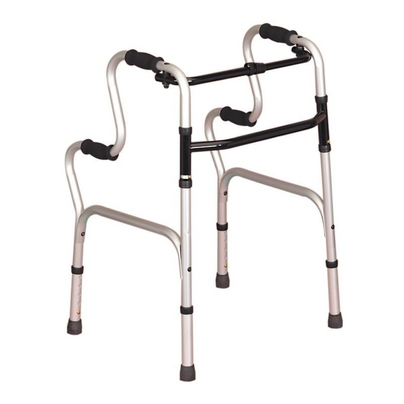 Además de caminador, este producto sirve como ayuda para incorporarse desde la posición de reposo. Para mayor resistencia y ligereza, el caminador está fabricado en aluminio. Así mismo, para mayor facilidad a la hora de almacenar, el caminador es plegable.