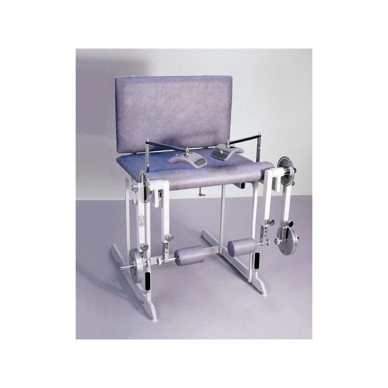 Por la disposición de sus componentes mecánicos bilaterales, facilita la realización de múltiples ejercicios de flexoextensión de miembros, tanto inferiores como superiores. Cada componente lateral dispone de dos barras telescópico-radiales pivotantes en un eje transversal con disco selector fijo a la armadura mediante cajas dobles en rodamientos a bolas; en los extremos de las barras, tanto inferior como exterior, indistintamente, se puede acoplar los dispositivos necesarios, para la realización del ejercicio requerido.