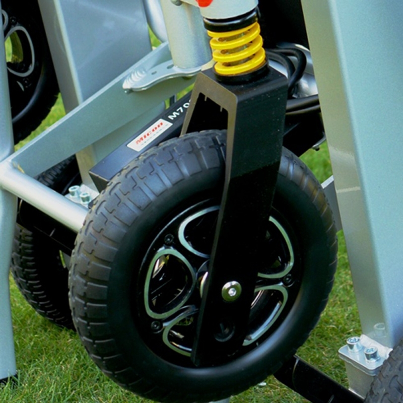 La Mistral cuenta con todos los accesorios imprescindibles que toda silla de ruedas eléctrica debe tener. Por supuesto, cuenta con un cinturón de seguridad que evitará que el usuario se caiga de la silla de ruedas para ancianos. También dispone de un maletín portaobjetos en el que podrás transportar tus pertenencias siempre que lo necesites. Tanto su respaldo, como reposapiés y reposabrazos son abatibles.