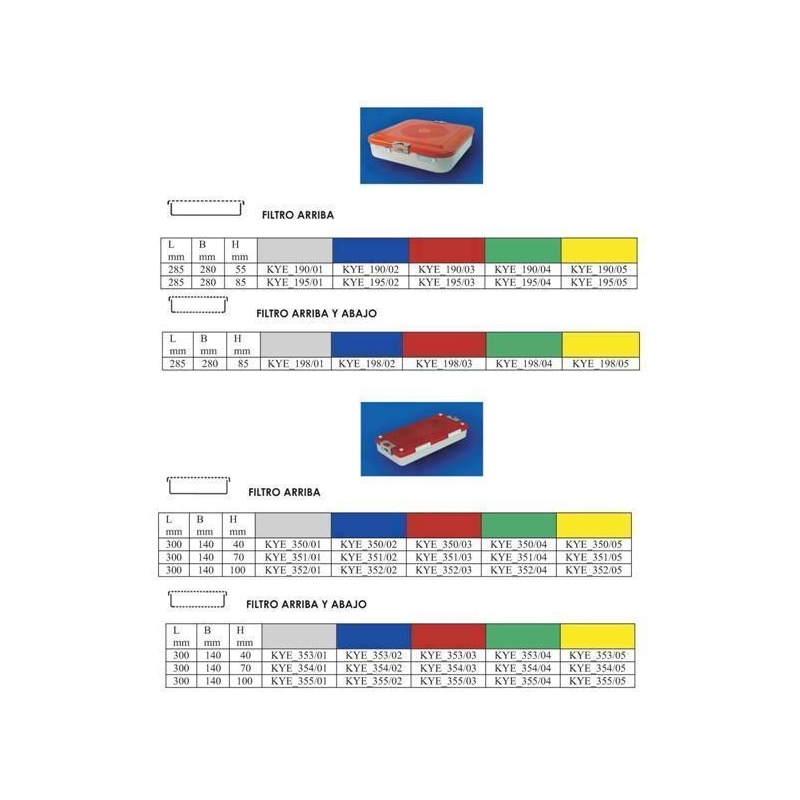 Contenedor llano plata para esterilización, con filtro arriba. Disponible la tapa en varios colores.