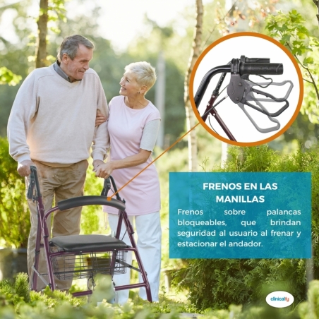 SEGURO: sus frenos de mano y puños ergonómicos se adaptan ayudando a repartir y amortiguar el peso al caminar, permitiendo un mejor manejo del andador