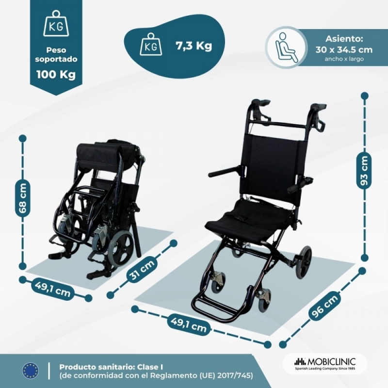 PLEGABLE: esta silla de ruedas plegable fabricada en aluminio para hacer un desplazamiento ligero sin perder en ningún momento la estabilidad.