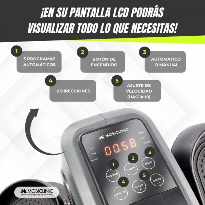Mini bicicleta elíptica | 10 velocidades | Pantalla LCD | Pedales antideslizantes | Gris | Veleta | Mobiclinic