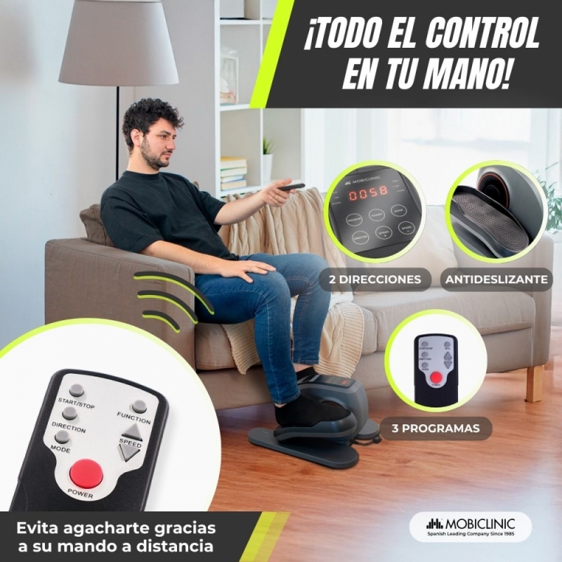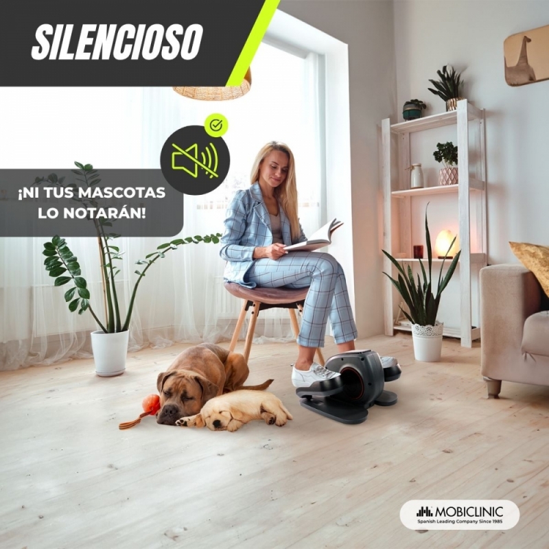 El ejercicio que se realiza con esta la mini elíptica eléctrica, no conlleva un gran impacto directo con el suelo, algo que sí ocurre con otros entrenamientos cardiovasculares. Además, este ejercicio es silencioso y seguro, ya que incorpora pedales antideslizantes de gran tamaño, diseñados para dejar la mínima distancia entre los pies y favoreciendo a una correcta posición durante el ejercicio. También incluye cuatro puntos antideslizante en los pies de apoyo al suelo para una estabilidad y seguridad total durante el ejercicio.
