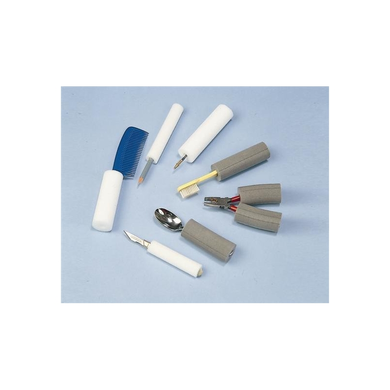 Especial para integrar mangos a utensilios, herramientas, cubiertos, bolígrafos, etc. Color blanco. Lavable en lavavajillas. Se vende en piezas de un metro de longitud y puede cortarse a la medida deseada. Disponible en varios tipos de diámetro tanto interno como externo. Es muy cómodo y fácil de usar, reduciendo la sensación de fatiga al realizar actividades de agarre. No es absorbente ni pegajoso.