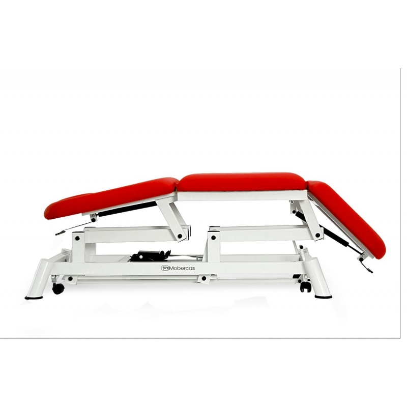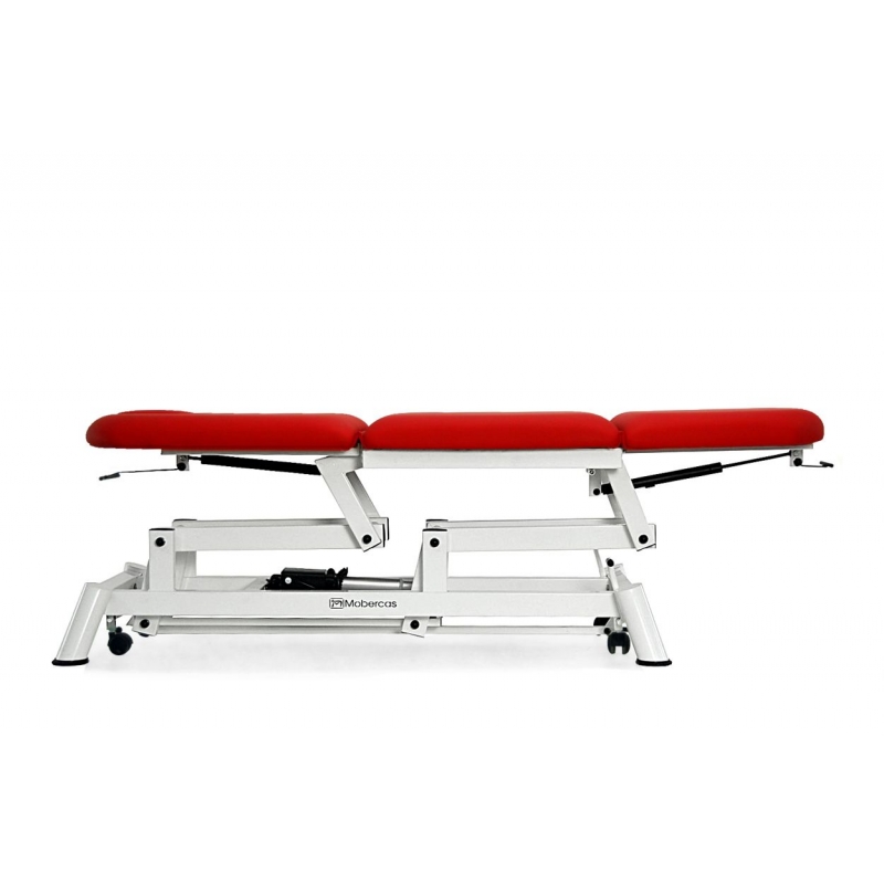 Camilla eléctrica tipo sillón de 3 secciones con tapón facial y ruedas escamoteables.
