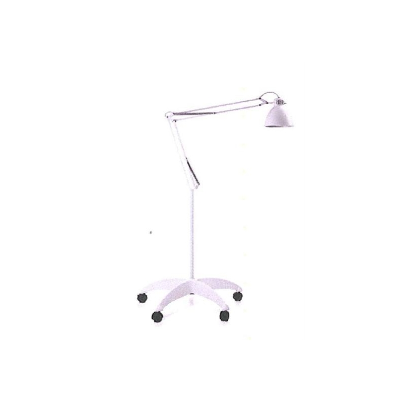 Esta lámpara de reconocimento en acero inoxidable incluye lámpara de bajo consumo de 15W (80W). Fuente de luz: estándar 3x3 W. Base rodable con cinco ruedas.