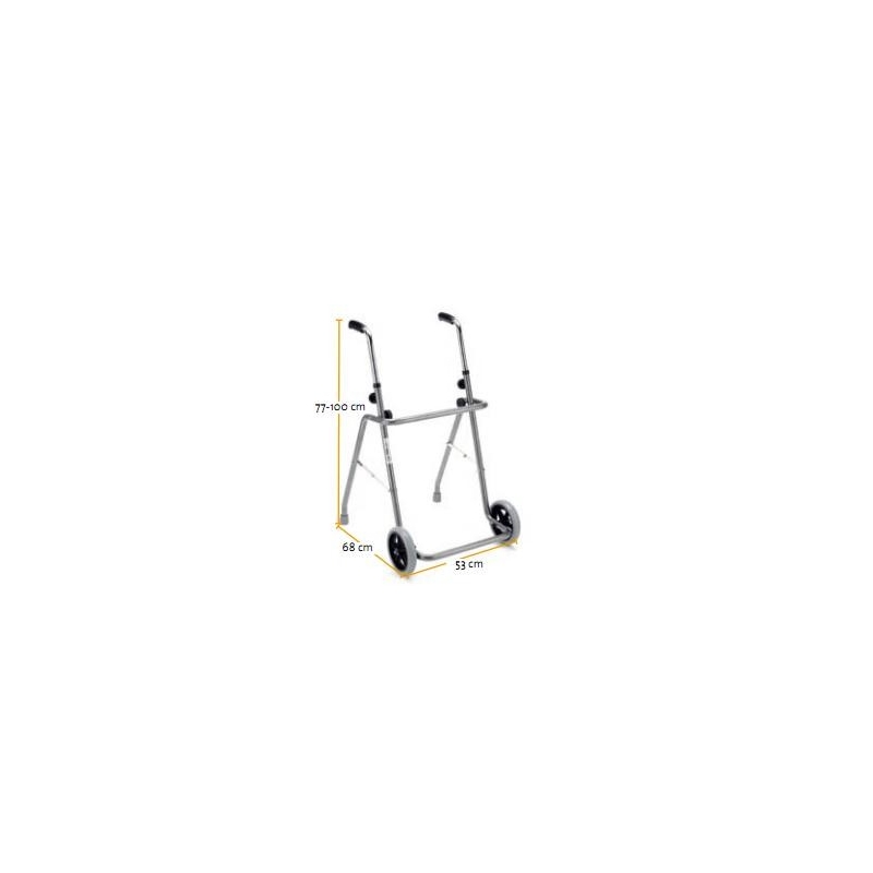 Andador de acero pintado plegable, con puños con regulación independiente.
