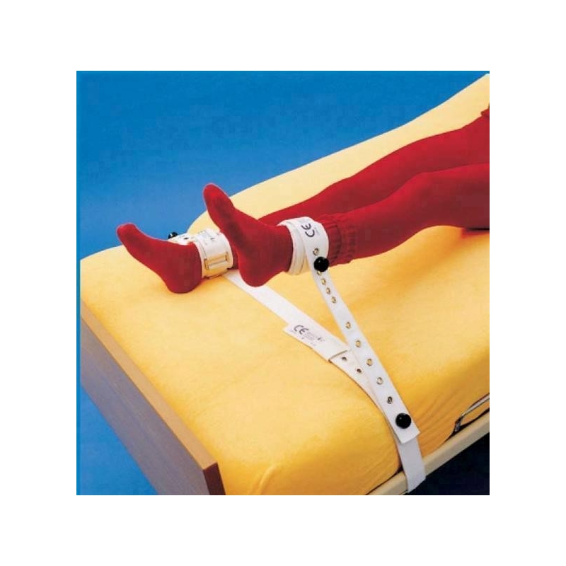 El sistema sujeción de piernas sirve para fijar de forma relajada o firme uno o ambos pies. De igual funcionamiento y características que la muñequera. Fijando relajadamente, es posible determinar una cierta libertad para los pies, pudiendo girar el cuerpo, en posición lateral o boca abajo. En la posición lateral se consigue una estabilidad adicional por medio de la fijación de una pierna tratando así el decúbito.