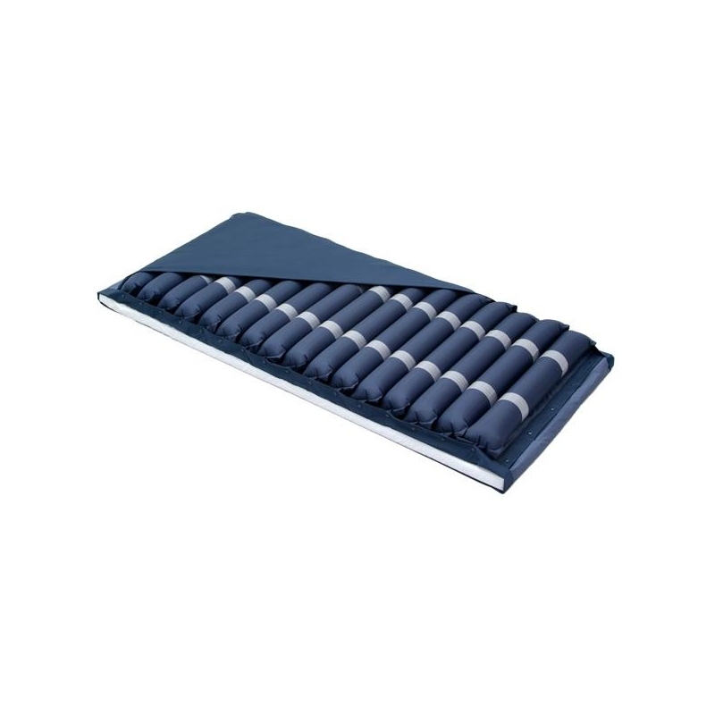 Este colchón antiescaras dispone de un sistema de alternancia de celdas que permite una distribución homogénea de la presión en decúbito, minimizando los picos de presión y protegiendo las zonas de riesgo desencadenantes de úlceras por presión. Además, cuenta con un compresor con control digital para regular el tiempo del ciclo y la presión de forma automática. El colchón ortopédico está compuesto por 20 celdas de aire + base. Las 2 celdas de la cabeza no se deshinchan (efecto almohada antiescaras). Viene acompañado de una funda de nylon resistente al agua y transpirable que reduce la fricción. Permite seleccionar modo Alternante o Estático y tiene un indicador/alarma de baja presión.