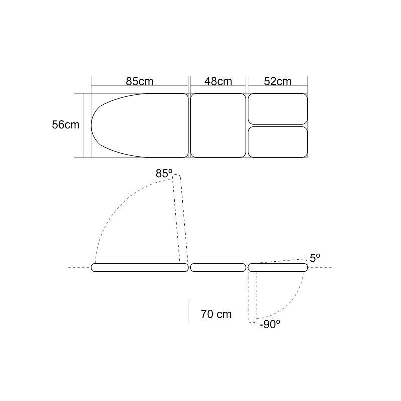 REGULABLE: El respaldo y las perneras de esta camilla son elevables y reclinables, adaptándose a las necesidades del usuario.