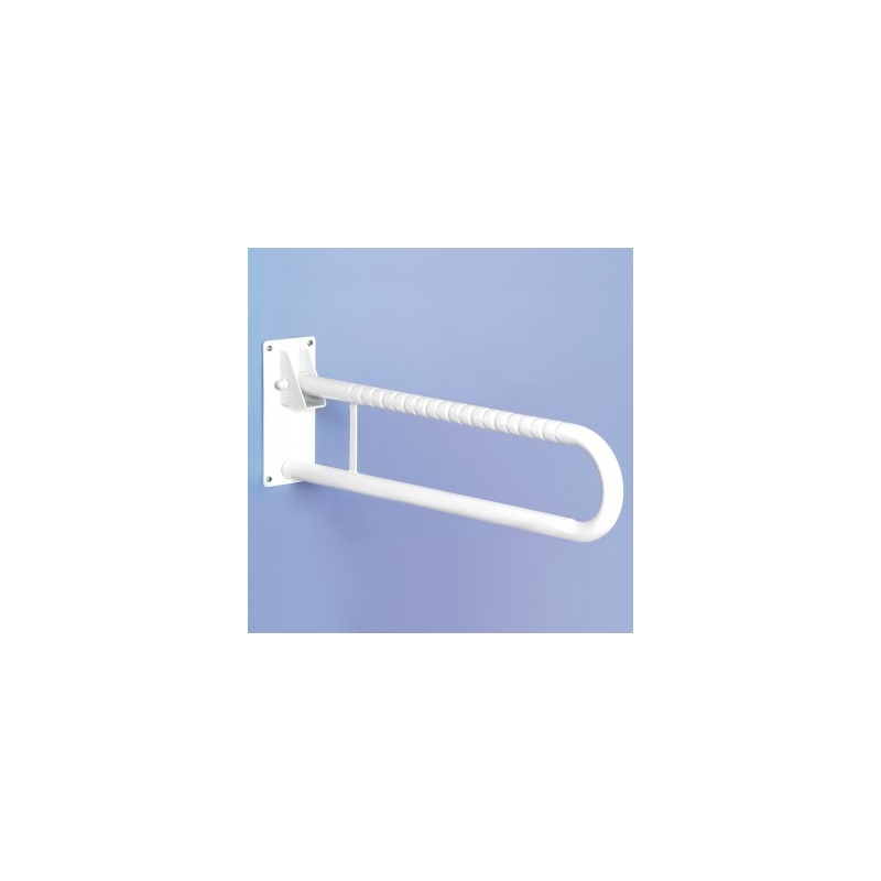 Se trata de una barra de acero pintado. El producto va montado sobre la pared para asegurar así su fijación. Del mismo modo, es una barra abatible y cuando está fuera de uso, queda fijada en posición vertical para ocupar el menor espacio posible. No está recomendada para ambientes húmedos.