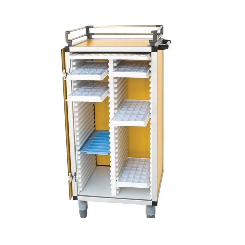 -Fabricado en madera fenólica. -Permite transportar la medicación de forma ordenada a través de bandejas (no incluidas). -Capacidad para 54 bandejas. -Medidas: 57 x 115 x 51 cm