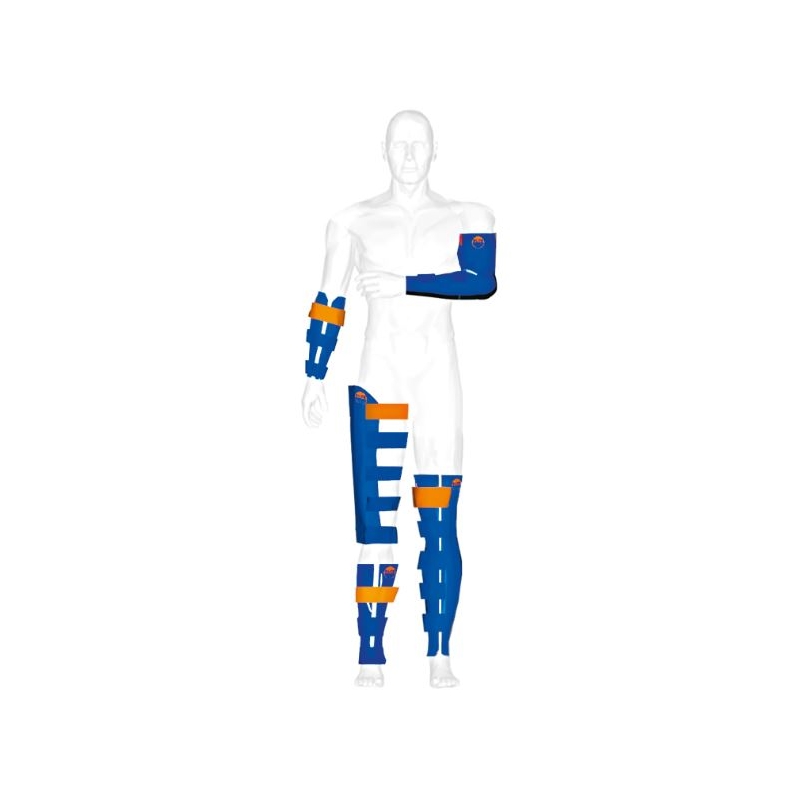 Un sistema ideal para inmovilizar todas las extremidades del cuerpo, de forma totalmente segura y eficaz. El kit o set de Blue Splint está formado por 5 férulas, para antebrazo, muñeca, codo y tobillo, brazo y pierna. Todas y cada una de las férulas pueden ser modeladas, ajustándose a las necesidades, características y situaciones del paciente, ofreciendo un modo de tratar único para tratar los miembros fracturados o dislocados.