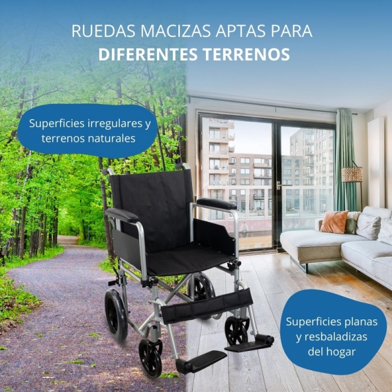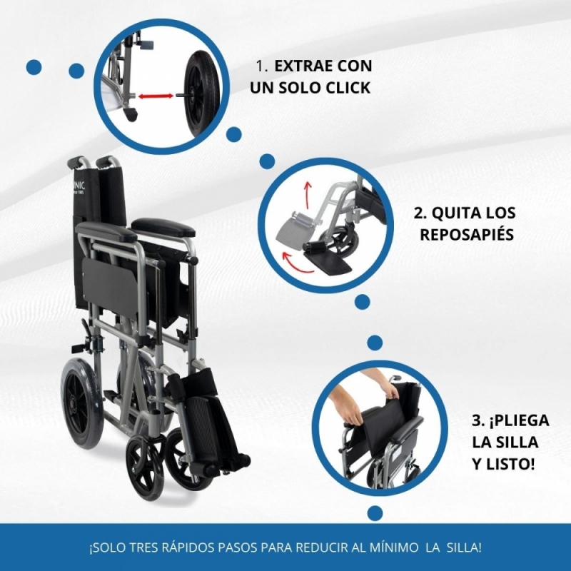 - La silla de ruedas es plegable para poder transportarla y guardarla fácilmente.