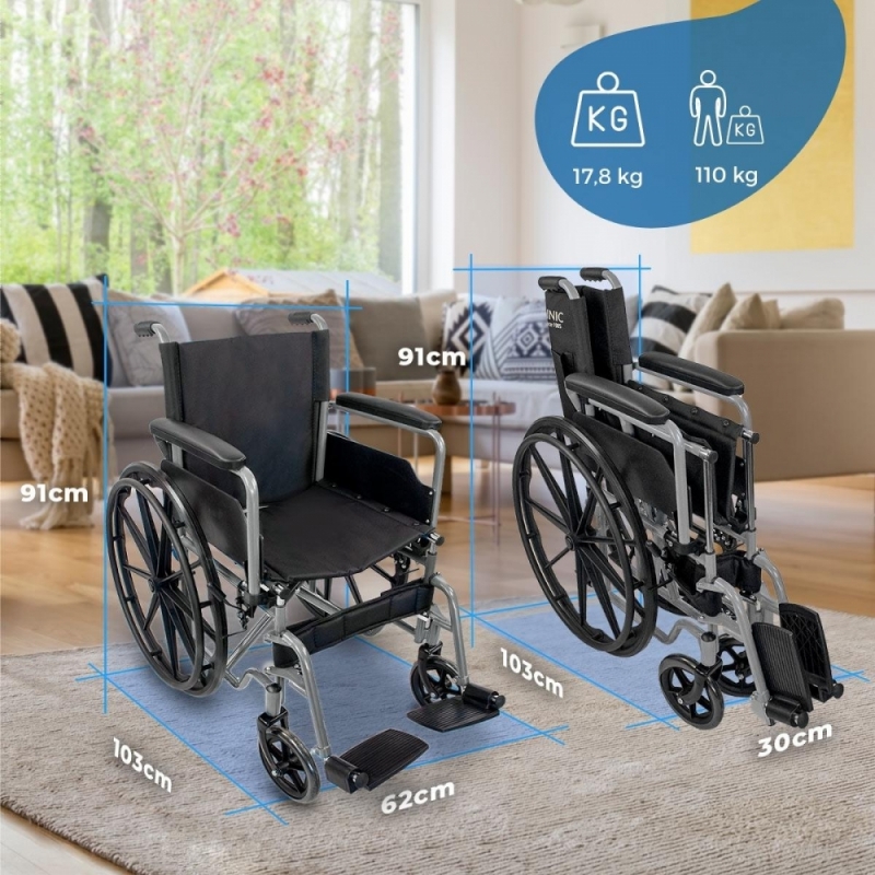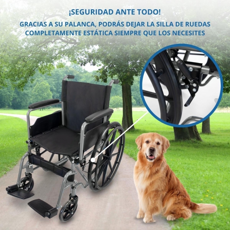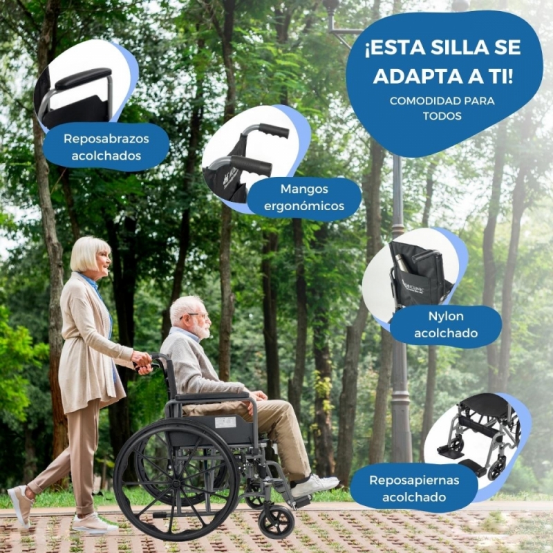 - La silla de ruedas es plegable para poder transportarla y guardarla fácilmente.