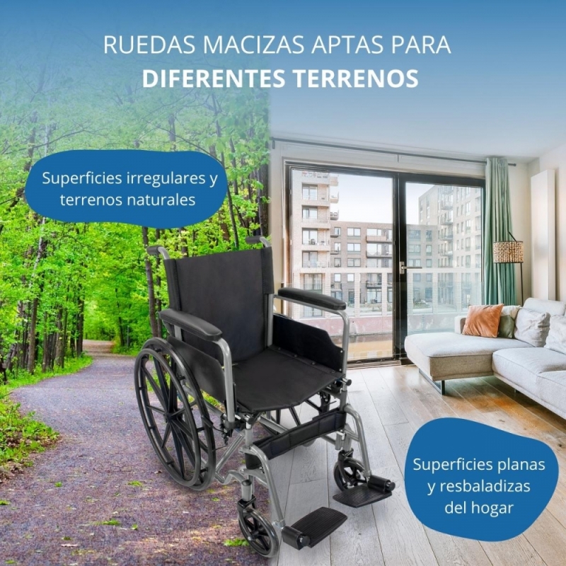 - Proporciona más autonomía a la persona, gracias a sus ruedas grandes autopropulsables por el paciente.