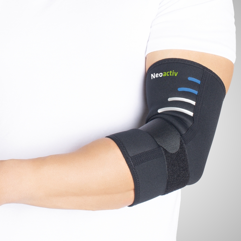 Confeccionada en neopreno médico/sanitario. Se adapta perfectamente tanto al antebrazo como al brazo, ofreciendo estabilidad y soporte a toda la articulación del codo, además de calor antiálgico y compresión.