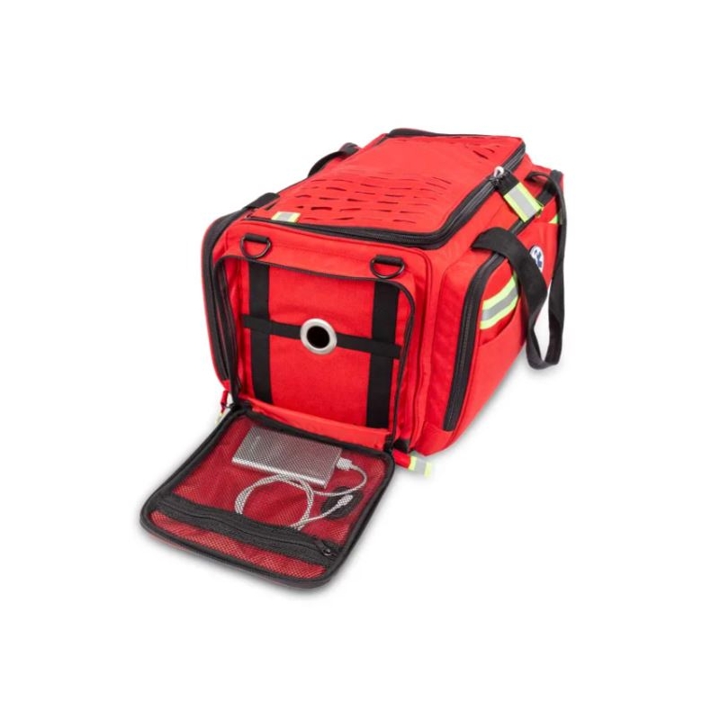 La bolsa de emergencias Critical´s Evo de Elite bags aloja tanto la botella de oxígeno como todo el material sanitario necesario para la atención de pacientes en estado crítico. Panel extraíble con 4 divisiones y tiradores de colores según el código de colores internacional. Interior completamente adaptable gracias a sus divisores acolchados de velcro extraíbles.