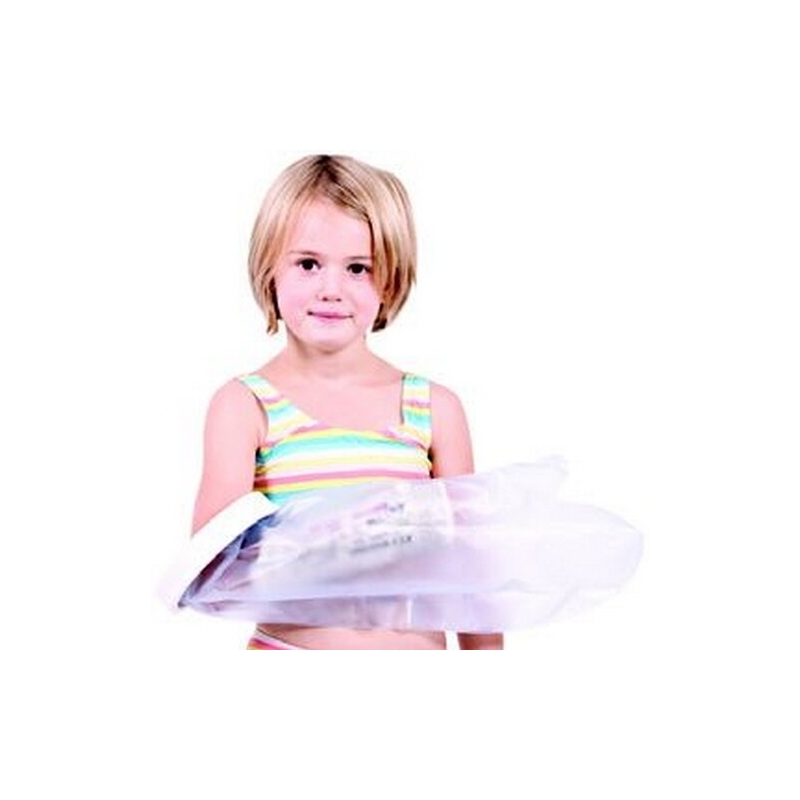 Protección de yeso impermeable, fácil de colocar. Consiste en un extremo con un sello de silicona que se adapta a la piel sin tirar y una cubierta de polipropileno flexible impermeable que permite utilizar la mano.