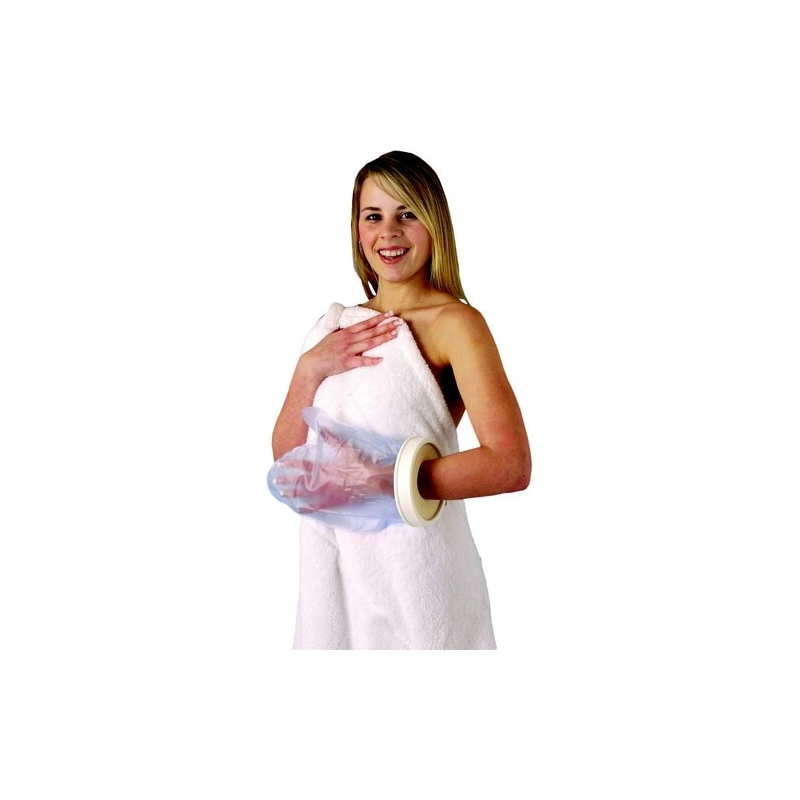 Protección de yeso impermeable, fácil de colocar. Consiste en un extremo con un sello de silicona que se adapta a la piel sin tirar y una cubierta de polipropileno flexible impermeable que permite utilizar la mano.