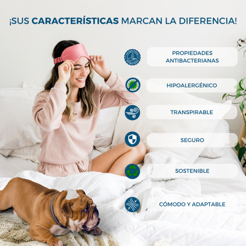 DOBLE CARA: El topper Dreamy está diseñado para aquellos que buscan una forma de mejorar la calidad de sueño durante todo el año debido a su doble cara. La cara de invierno aporta calidez y posee propiedades antibacterianas y fungicidas para neutralizar posibles olores. La cara de verano aporta frescor en verano. Mantiene el cuerpo a una temperatura ideal.