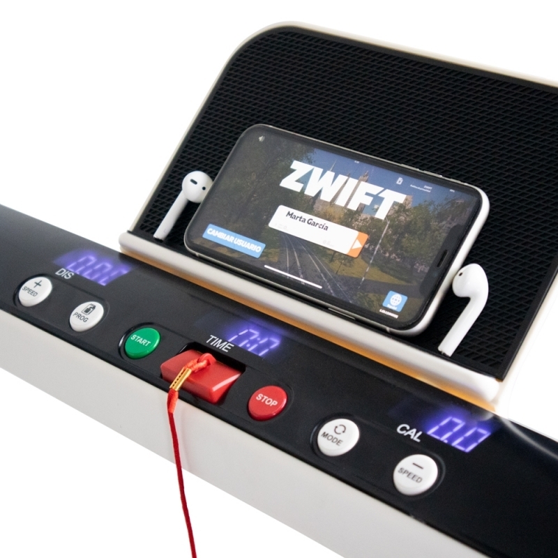 Gracias a su display LED y a su tablón incorporado para apoyar el móvil, podrás ver tus series y escuchar tus canciones favoritas mientras entrenas. Del mismo modo, con las aplicaciones compatibles podrás escoger entre diferentes planes de entrenamiento, rutas en bicicleta en grupo, carreras y mucho más. Igualmente, la cinta de correr se puede utilizar sin la app, ya que dispone de una barra led con 12 programas completos de entrenamiento.